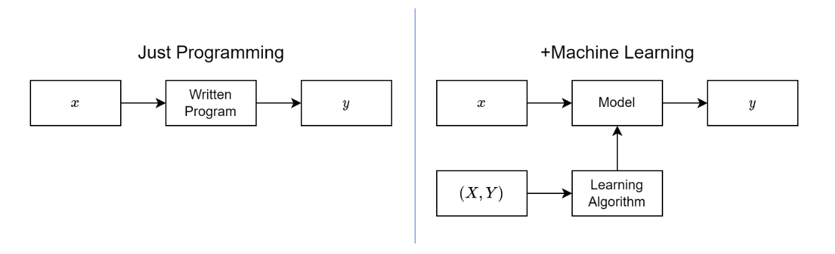 In traditional programming, you write rules that transform inputs to outputs. If the customer buys a camera, recommend lenses. But what if it was a gift? What if they already have five lenses? You’d need thousands of rules for every exception.