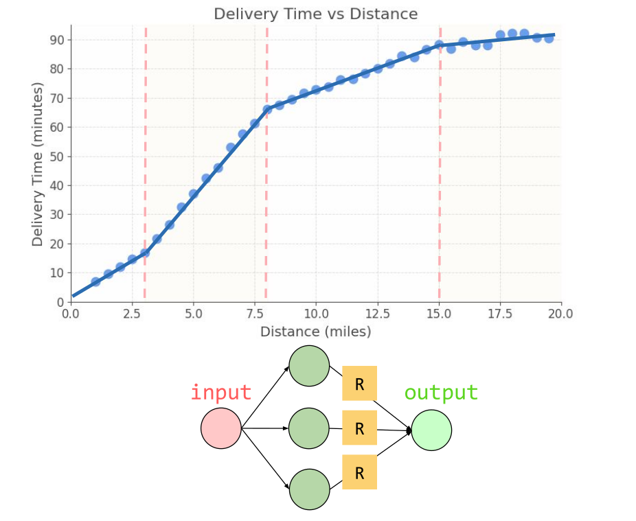 Multiple neurons → multiple bends → smooth curve