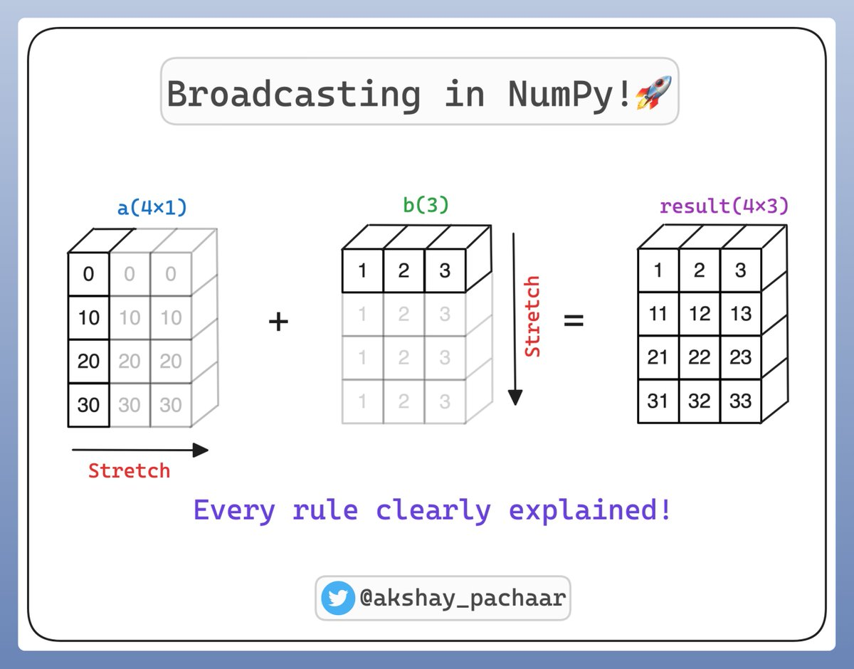 Rule: When one dimension is 1 and the other is larger, PyTorch expands the smaller dimension