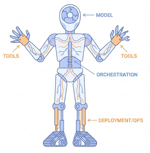 Agent = Model + Tools + Orchestration + Runtime