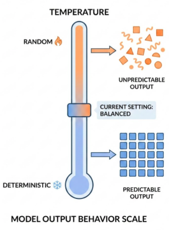 - High temperature (close to 1) is good for creative tasks or generating varied responses.