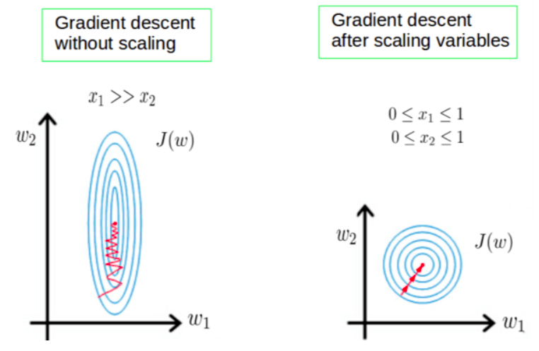 تظهر أهمية ذلك في خوارزمية النزول التدريجي (SGD). إذْ تتأثر الخطوة -في اتجاه تقليل الخطأ- بتفاوت قيَم المتغيرات.